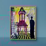 This is a mixed media painting with collage from my imagination, featuring one of our vintage church chairs that I love. I used stencils, gel prints, and die cut images along with drawing/painting.
