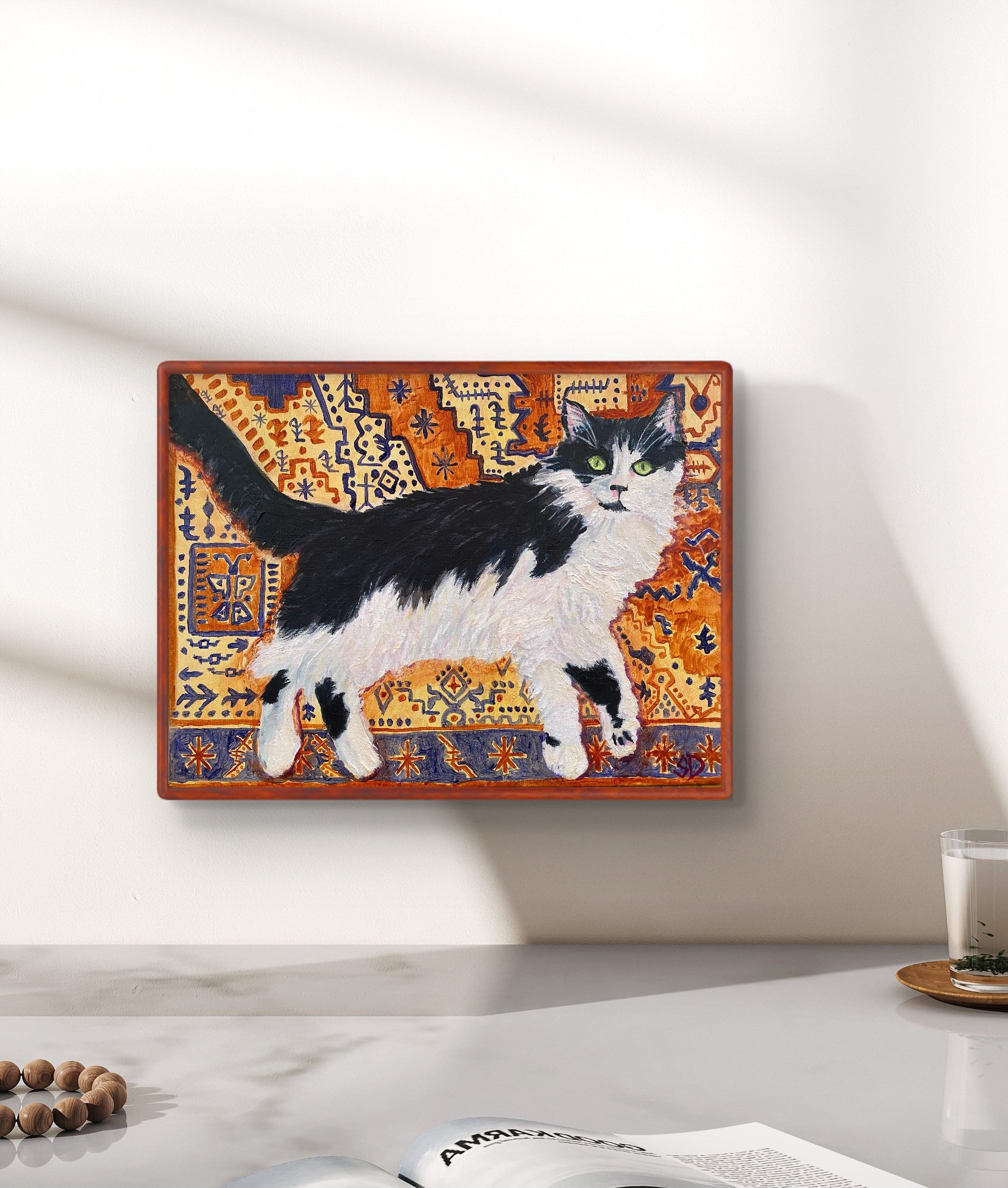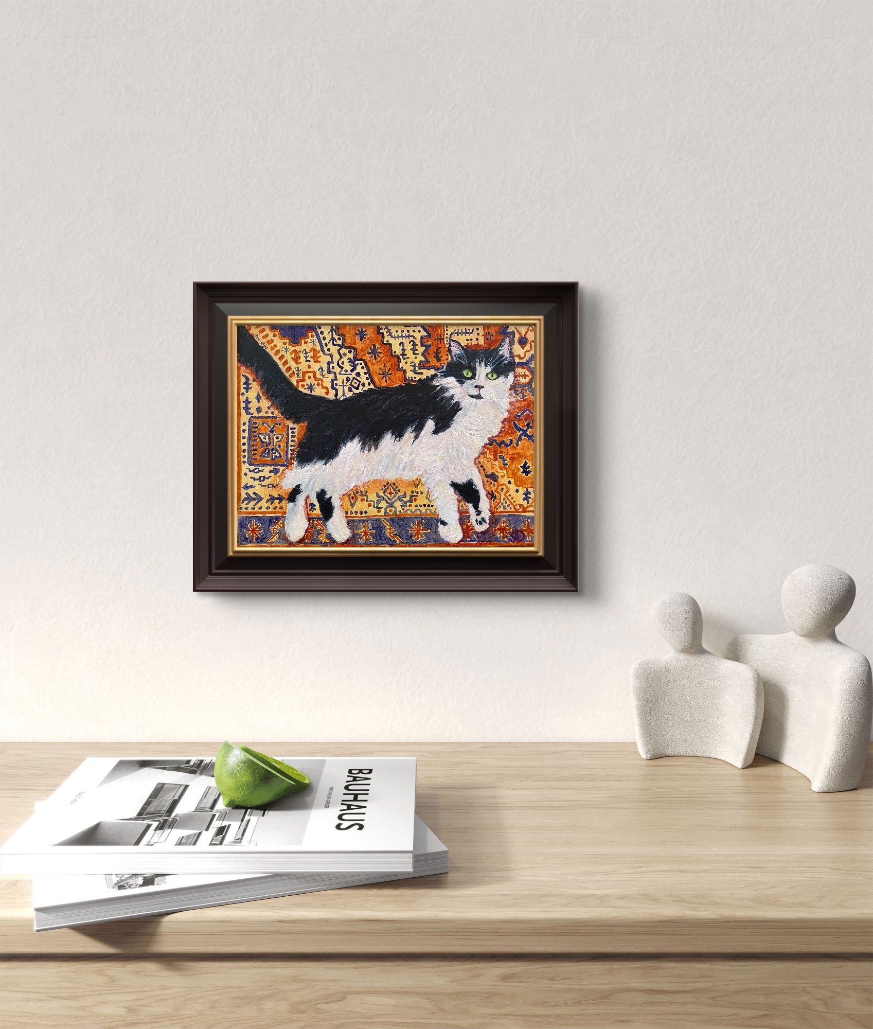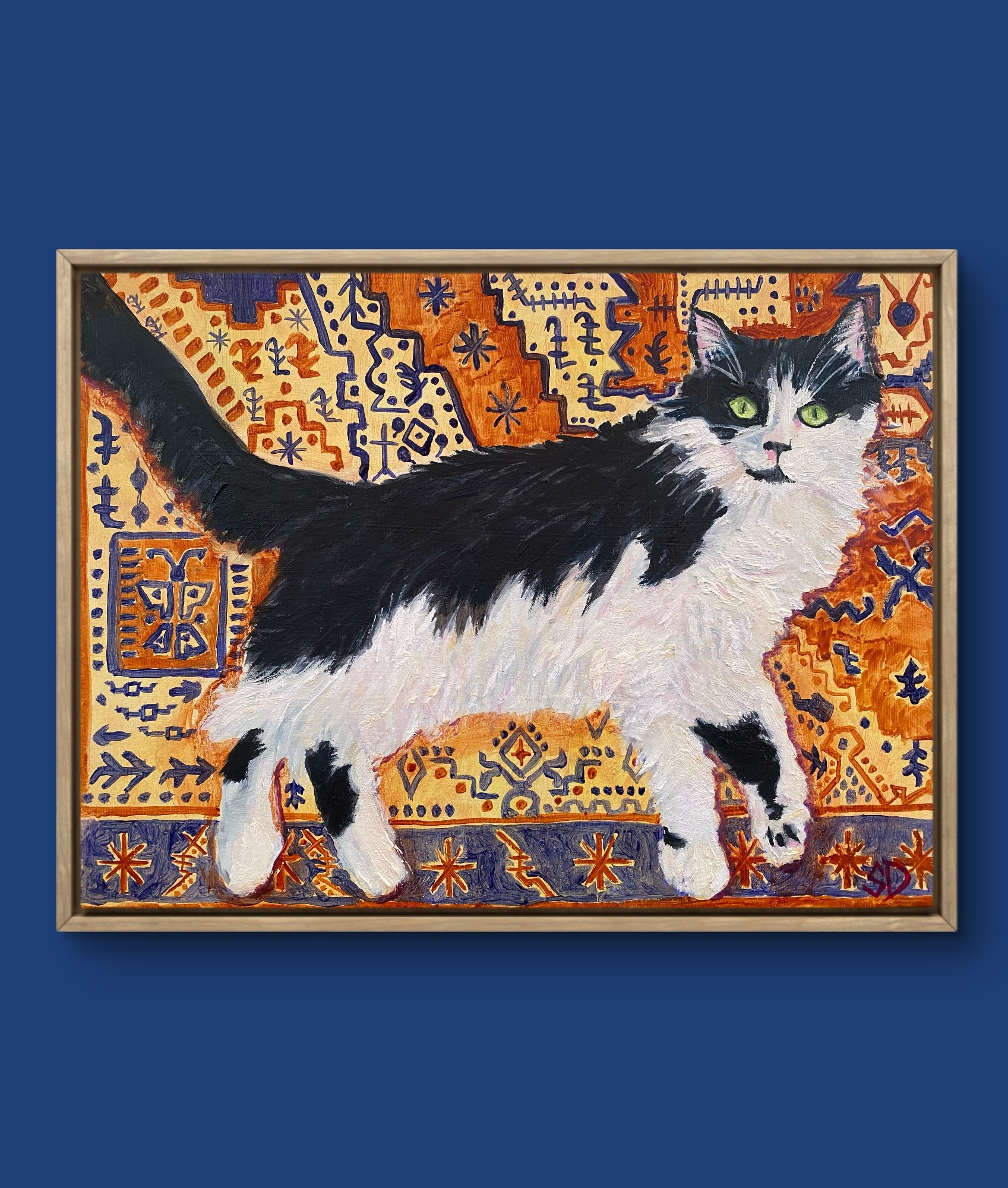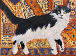 Our Tuxedo cat, Phoebe La Fantôme flopped down on the carpet and looked at the camera just before she entered dreamland.